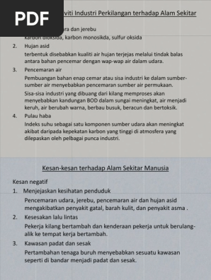 Kesan Kesan Akitiviti Industri Perkilangan Terhadap Alam Sekitar Pdf